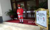 Petugas menyemprot disinfektan di Sudirman Suites Hotel Grand Inna Malioboro, Yogyakarta, Jumat (5/6). Menyambut era new normal pandemi virus corona, Hotel Grand Inna Malioboro menggunakan protokol kesehatan ketat (FOTO : Wihdan Hidayat/ Republika)