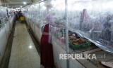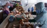 REPUBLIKA.CO.ID, BATANG -- Pembeli berinteraksi dengan pedagang saat uji coba persiapan pasar penerapan Normal Baru di Pasar Batang, Kabupaten Batang, Jawa Tengah, Sabtu (6/6/2020).