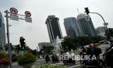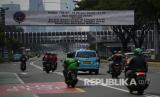 Sejumlah melintas di dekat kawasan aturan ganjil-genap, Bundaran Bank Indonesia, Jakarta, Sabtu (6/6/2020). Pemprov DKI Jakarta mengeluarkan Pergub nomor 51 Tahun 2020 tentang Pembatasan Sosial Berskala Besar (PSBB) pada Masa Transisi Menuju Masyarakat Sehat, Aman dan Produktif yang didalamnya mengatur pembatasan kendaraan dengan rekayasa ganjil-genap untuk sepeda motor dan mobil. (FOTO : Antara/Sigid Kurniawan)