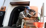 REPUBLIKA.CO.ID, JAKARTA -- Seorang pekerja menyemprotkan cairan disinfektan pada salah satu jendela di Museum Bahari, Jakarta, Sabtu (6/6/2020).