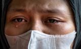 Istri almarhum Lettu Wisnu Tia Aruni, Yuanita Rahmawati menitikkan air mata saat prosesi pemakaman suaminya di Tempat Pemakaman Umum Kembangarum (Bergota II), Semarang, Jawa Tengah, Ahad (7/6/2020). Lettu Wisnu Tia Aruni merupakan satu dari empat prajurit TNI AD yang tewas dalam insiden kecelakaan helikopter MI-17 V5 di Kawasan Industri Kendal (KIK), Jateng pada Sabtu (6/6/2020) (FOTO : ANTARA/AJI STYAWAN)