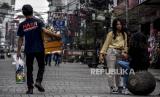 REPUBLIKA.CO.ID, BANDUNG -- Sejumlah warga beraktivitas di Jalan Dalem Kaum, Kota Bandung, Ahad (7/6). Walaupun dalam masa Pembatasan Sosial Berskala Besar (PSBB) secara proporsional kawasan tersebut mulai ramai dikunjungi warga.