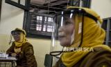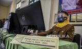 Panitia Penerimaan Peserta Didik Baru (PPDB) menggunakan pelindung wajah (face shield) saat bertugas di SMAN 3 Bandung, Jalan Belitung, Kota Bandung, Senin (8/6). Penerimaan Peserta Didik Baru (PPDB) SMA, SMK dan SLB di Jawa Barat digelar secara daring dalam dua tahap yakni 8 - 12 Juni dan 25 Juni - 1 Juli (FOTO : ABDAN SYAKURA/REPUBLIKA)