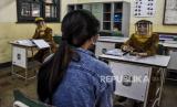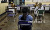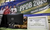Panitia memeriksa proses Penerimaan Peserta Didik Baru (PPDB) secara daring di SMAN 3 Bandung, Jalan Belitung, Kota Bandung, Senin (8/6). Penerimaan Peserta Didik Baru (PPDB) SMA, SMK dan SLB di Jawa Barat digelar secara daring dalam dua tahap yakni 8 - 12 Juni dan 25 Juni - 1 Juli (FOTO : ABDAN SYAKURA/REPUBLIKA)