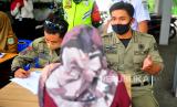 Petugas Satpol PP memberikan arahan kepada pengendara yang kedapatan tidak mengenakan masker saat pelaksanaan Operasi Patuh Penerapan Kebijakan Pemakaian Masker di Jambi, Senin (8/6/2020). Pemerintah Kota Jambi secara efektif mulai memberlakukan sanksi denda sebesar Rp50 ribu per orang bagi warga yang tidak mengenakan masker ketika berada di ruang publik (FOTO : ANTARA FOTO/WAHDI SEPTIAWAN)