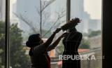 Petugas kebersihan membersihkan ruangan di Ruang Bersama (Coworking Space) Jakarta Creative Hub, Jakarta, Selasa (9/6/2020). Memasuki masa transisi tatanan normal baru fase I, Jakarta Creative Hub sebagai penyedia ruang kerja terbuka bagi para pelaku usaha kreatif belum kembali beroperasi. (FOTO : Antara/Muhammad Adimaja)
