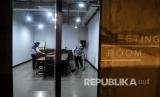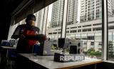 REPUBLIKA.CO.ID, Petugas kebersihan membersihkan peralatan di Ruang Bersama (Coworking Space) Jakarta Creative Hub, Jakarta, Selasa (9/6/2020).