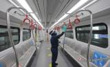 Petugas membersihkan ruang penumpang di koridor LRT Jakarta di Stasiun Velodrome, Jakarta, Selasa (9/6/2020). Memasuki masa transisi fase I menuju kenormalan baru, LRT Jakarta beroperasi secara normal dan menerapkan tata layanan baru dengan protokol kesehatan untuk menciptakan kenyamanan dan keamanan kepada setiap penumpang. (FOTO : ANTARA/Reno Esnir)