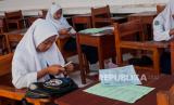 Calon siswa mengisi data saat Penerimaan Peserta Didik Baru (PPDB) 2020 untuk tingkat SLTA di SMAN 1 Pamekasan, Jawa Timur, Selasa (9/6/2020). Kendati pelaksanaan PPDB dilaksankan secara daring, namun sekolah tersebut tetap membentuk kepanitiaan penerimaan guna membantu calon siswa yang terkendala masalah teknis, dengan tetap menggunakan protokol kesehatan (FOTO : SAIFUL BAHRI/ANTARA FOTO)