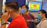 Layar elektronik memperlihatkan jumlah pengunjung yang sedang berbelanja di salah satu pasar swalayan di Manado, Sulawesi Utara, Selasa (9/6/2020). Penggunaan sekat transparan, pelindung wajah, sarung tangan, kewajiban menggunakan masker, mencuci tangan, menjaga jarak, serta pembatasan jumlah pengunjung diterapkan untuk mencegah penularan COVID-19 (FOTO : ANTARA/ADWIT B PRAMONO)