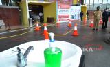 Pengunjung antre untuk mencuci tangan saat berada di halaman salah satu pusat perbelanjaan di Kota Kupang, NTT, Selasa (9/6/2020). Sejumlah pusat perbelanjaan di Kota Kupang kembali dibuka dengan menerapkan protokol kesehatan pencegahan COVID-19 dalam rangka menyambut tatanan normal baru di daerah itu (FOTO : Antara/Kornelis Kaha)