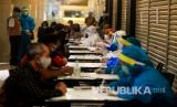 Petugas Gugus Tugas Penanganan Covid19 mendata karyawan saat pelaksanaan rapid diagnostic test (RDT) virus coroa di Galeria Mall Yogyakarta, Rabu (10/6). Pelaksanaan rapid test kepada 80 karyawan secara acak di pusat perbelanjaan itu guna memastikan tidak adanya klaster baru yang berkembang di masyarakat (FOTO : Wihdan Hidayat/ Republika)