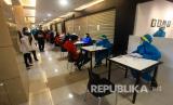 karyawan menunggu rapid diagnostic test (RDT) virus coroa di Galeria Mall Yogyakarta, Rabu (10/6). Pelaksanaan rapid test kepada 80 karyawan secara acak di pusat perbelanjaan itu guna memastikan tidak adanya klaster baru yang berkembang di masyarakat (FOTO : Wihdan Hidayat/ Republika)