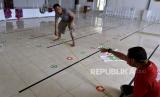 Seperti yang dilakukan Warga mengukur jarak saat memasang stiker panduan jarak shalat di Mushola Yayasan Al-Hikmah, Badung.
