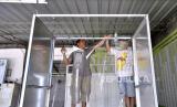 Warga membuat bilik disinfeksi di Mushola Yayasan Al-Hikmah, Badung, Rabu (10/6/2020). Pengurus tempat ibadah tersebut mulai mempersiapkan penerapan berbagai protokol kesehatan untuk mencegah penyebaran COVID-19, sebagai persiapan apabila tempat ibadah itu dapat dibuka kembali untuk aktivitas umat dalam tatanan normal baru (FOTO : ANTARA/FIKRI YUSUF)
