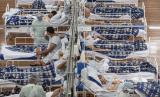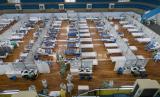 REPUBLIKA.CO.ID, BRASIL -- Pasien COVID-19 berbaring di ranjang di rumah sakit lapangan yang dibangun di dalam gym di Santo Andre, di Sao Paulo, Brasil, Selasa (9/6).