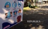 Papan peringatan penggunaan masker dipasang sebagai salah satu protokol masuk kawasan Candi Prambanan, Yogyakarta, Kamis (11/6). PT Taman Wisata Candi (TWC) Borobudur, Prambanan & Ratu Boko melakukan berbagai persiapan untuk simulasi pertama praoperasional dengan standar new normal pariwisata di kawasan TWC (FOTO : Wihdan Hidayat/ Republika)