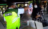 Petugas mengukur suhu tubuh pengunjung saat simmulasi protokol masuk kawasan Candi Prambanan, Yogyakarta, Kamis (11/6). PT Taman Wisata Candi (TWC) Borobudur, Prambanan & Ratu Boko melakukan berbagai persiapan untuk simulasi pertama praoperasional dengan standar new normal pariwisata di kawasan TWC (FOTO : Wihdan Hidayat/ Republika)