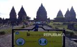 Papan informasi dipasang di kawasan Candi Prambanan, Yogyakarta, Kamis (11/6). PT Taman Wisata Candi (TWC) Borobudur, Prambanan & Ratu Boko melakukan berbagai persiapan untuk simulasi pertama praoperasional dengan standar new normal pariwisata di kawasan TWC (FOTO : Wihdan Hidayat/ Republika)