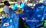 Tanda jarak sosial dipasang di bus pengunjung saat simulasi protokol masuk kawasan Candi Prambanan, Yogyakarta, Kamis (11/6). PT Taman Wisata Candi (TWC) Borobudur, Prambanan & Ratu Boko melakukan berbagai persiapan untuk simulasi pertama praoperasional dengan standar new normal pariwisata di kawasan TWC (FOTO : Wihdan Hidayat/ Republika)