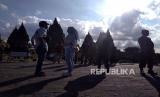 Simulasi kunjungan dengan protokol masuk kawasan Candi Prambanan, Yogyakarta, Kamis (11/6). PT Taman Wisata Candi (TWC) Borobudur, Prambanan & Ratu Boko melakukan berbagai persiapan untuk simulasi pertama praoperasional dengan standar new normal pariwisata di kawasan TWC (FOTO : Wihdan Hidayat/ Republika)