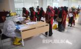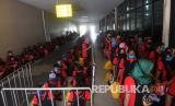 REPUBLIKA.CO.ID, JAKARTA -- Sejumlah TKI Ilegal yang dipulangkan dari Malaysia menunggu untuk menjalani pemeriksaan kesehatan setibanya di Terminal Penumpang Nusantara Pelabuhan Tanjung Priok, Jakarta, Jumat (12/6/2020).