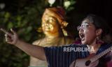 Penyanyi Endah Laras membawakan lagu almarhum Didi Kempot pada acara Konser Mengenang 40 Hari Didi Kempot" di Angkringan Omahe Whawin, Solo, Jawa Tengah, Kamis (11/6/2020). Konser yang menampikan sejumlah seniman di Kota Solo tersebut disiarkan secara live streaming dalam rangka peringatan 40 hari meninggalnya Didi Kempot. (FOTO : MOHAMMAD AYUDHA/ANTARA FOTO)