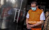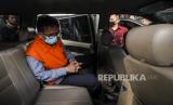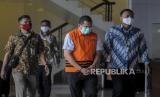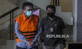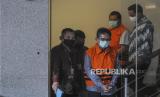 Mantan Direktur Niaga PT Dirgantara Indonesia (PTDI) Irza Rizaldi Zailani berjalan memakai rompi oranye usai menjalani pemeriksaan di Gedung KPK, Jakarta Jumat (12/6). KPK menetapkan Budi Santoso dan Irzal Rinaldi Zailani sebagai tersangka terkait kasus dugaan korupsi penjualan dan pemasaran di PTDI tahun 2007-2017, yang mengakibatkan kerugian negara mencapai Rp 205,3 miliar dan US$ 8,65 juta (FOTO : Republika/Putra M. Akbar)