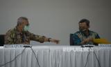 Ketua KPU Arief Budiman (kiri) berbicara dengan Komisioner KPU Pramono Ubaid Tanthowi di sela konferensi pers tentang Pilkada serentak di Gedung KPU, Jakarta, Jumat (12/6/2020). KPU menyatakan pemilihan kepala daerah serentak di 270 daerah tetap akan dilaksanakan pada 9 Desember 2020 di tengah pandemi COVID-19 (FOTO : ANTARA FOTO/Aditya Pradana Putra)