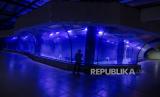 Pegawai membersihkan kaca akuarium di Pangandaran Integrated Aquarium and Marine Research Institute (PIAMARI) di kawasan Pelabuhan Pendaratan Ikan Cikidang, Desa Babakan, Kabupaten Pangandaran, Jawa Barat, Jumat (12/6/2020). Akuarium yang diklaim sebagai akuarium terpanjang di dunia dengan panjang 47,895 meter tersebut dibangun untuk Kementerian Kelautan dan Perikanan (KKP) sebagai sarana wisata edukasi dan riset kelautan (FOTO : ANTARA FOTO/Adeng Bustomi)