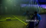 Pegawai membersihkan lokasi akuarium di Pangandaran Integrated Aquarium and Marine Research Institute (PIAMARI) di kawasan Pelabuhan Pendaratan Ikan Cikidang, Desa Babakan, Kabupaten Pangandaran, Jawa Barat, Jumat (12/6/2020). Akuarium yang diklaim sebagai akuarium terpanjang di dunia dengan panjang 47,895 meter tersebut dibangun untuk Kementerian Kelautan dan Perikanan (KKP) sebagai sarana wisata edukasi dan riset kelautan (FOTO : ANTARA FOTO/Adeng Bustomi)