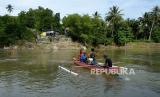 REPUBLIKA.CO.ID, GORONTALO -- Warga Suwawa Selatan dan Suwawa Tengah menyewa jasa penyeberangan dengan menggunakan perahu untuk melintasi sungai Bone dengan tarif Rp5.000 per orang di Alale, Kabupaten Bone Bolango, Gorontalo, Ahad (14/6).