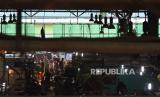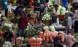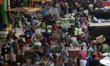 Suasana aktivitas jual beli di Pasar Induk Kramat Jati, Jakarta, Ahad (14/6/2020). Anggota Tim Komunikasi Publik Gugus Tugas Percepatan Penanganan COVID-19 Reisa Broto Asmoro mengatakan pasar tradisional rentan menjadi tempat penularan COVID-19 salah satunya akibat sarana pencegahan yang dinilai belum memadai (FOTO : ANTARA/Indrianto Eko Suwarso)