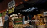 Pedagang mendistribusikan buah di Pasar Induk Kramat Jati, Jakarta, Ahad (14/6/2020). Anggota Tim Komunikasi Publik Gugus Tugas Percepatan Penanganan COVID-19 Reisa Broto Asmoro mengatakan pasar tradisional rentan menjadi tempat penularan COVID-19 salah satunya akibat sarana pencegahan yang dinilai belum memadai (FOTO : ANTARA/Indrianto Eko Suwarso)