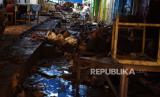 REPUBLIKA.CO.ID, BANTANG -- Warga membersihkan lumpur dan sisa banjir yang diterjang akibat banjir bandang di Pasar Sentral Bantaeng, Sulawesi Selatan, Ahad (14/6).