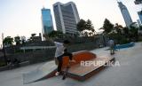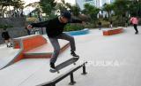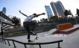 REPUBLIKA.CO.ID, JAKARTA -- Sejumlah pemuda bermain skateboard di kawasan Sudirman, Jakarta, Minggu (14/6). Meski dalam masa Pembatasan Sosial Berskala Besar (PSBB) transisi, skatepark tetap ramai pengunjung.