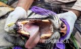REPUBLIKA.CO.ID, ACEH -- Petugas Balai Konservasi Sumber Daya Alam (BKSDA) Aceh memeriksa mulut harimau Sumatra (Panthera Tigris Sumatrae) di Desa Jambo Dalem, Kecamatan Trumon Timur, Aceh Selatan, Aceh, Senin (15/6/2020).
