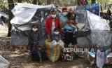 Liliana Hidalgo dan Abrahan Gonzalez berpose bersama putri mereka dan dua keponakan di luar tenda tempat mereka tinggal sejak akhir Mei bersama para migran Venezuela yang menganggur di Bogota, Kolombia, Rabu (10/6). Dua tahun lalu, pembuat roti profesional itu meninggalkan kampung halamannya di Puerto Ayacucho, negara bagian Amazonas, untuk bermigrasi ke Peru di mana ia menemukan pekerjaan di sebuah restoran dan dia bekerja menjual pakaian (FOTO : AP/Fernando Vergara)