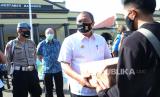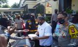 REPUBLIKA.CO.ID, BANDUNG -- Wali Kota Bandung Oded M Danial secara simbolis menyerahkan sembako kepada warga pada acara Bhakti Sosial Hari Bhayangkara ke-74, di Lapangan Apel Mapolrestabes Bandung, Rabu (17/6).