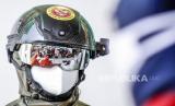 Petugas menggunakan helm deteksi suhu tubuh saat rapid test massal di CIbinong, Bogor, Jawa Barat, Rabu (17/6/2020). Badan Intelijen Negara (BIN) menggelar tes diagnostik cepat (rapid rest) massal gratis kepada warga guna mendeteksi dan mengantisipasi penyebaran COVID-19 (FOTO : ANTARA /Yulius Satria Wijaya)