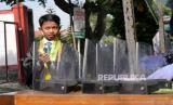 Pelindung wajah disiapkan untuk siswa untuk wisuda drive thru di SD Syuhada, Yogyakarta, Kamis (18/6). Sebanyak 112 siswa SD Syuhada melakukan wisuda dengan drive thru imbas pandemi Covid19 (FOTO : Wihdan Hidayat/ Republika)
