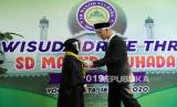Sebanyak 112 siswa SD Syuhada melakukan wisuda dengan menerapkan protokol kesehatan ketat. Siswa dites suhu tubuh, menggunakan handsanitizer, memakai pelindung wajah saat wisuda.