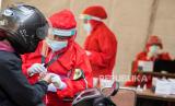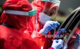 Petugas kesehatan mengambil sampel darah saat Drive Thru tes diagnostik cepat COVID-19 di Institut Teknologi Nasional (Itenas), Jawa Barat, Kamis (18/6/2020). Tes diagnostik cepat atau rapid test COVID-19 yang ditujukan untuk warga dan civitas akademik sebanyak 800 kit ini bertujuan untuk mencegah dan memutus rantai penularan COVID-19 memasuki era normal baru (FOTO : ANTARA/M Agung Rajasa)