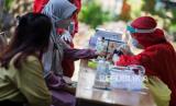 Petugas kesehatan mengambil sampel darah saat tes diagnostik cepat COVID-19 di Institut Teknologi Nasional (Itenas), Jawa Barat, Kamis (18/6/2020). Tes diagnostik cepat atau rapid test COVID-19 yang ditujukan untuk warga dan civitas akademik sebanyak 800 kit ini bertujuan untuk mencegah dan memutus rantai penularan COVID-19 memasuki era normal baru (FOTO : ANTARA /M Agung Rajasa)