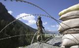 REPUBLIKA.CO.ID,SRINAGAR -- Sejumlah prajurit tentara India disiagakan di salah Gagangeer, India, Rabu (17/6). Pasukan keamanan India mengatakan tidak ada pihak yang melepaskan tembakan dalam bentrokan di wilayah Ladakh Senin malam.