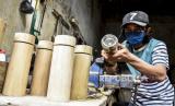 Perajin membuat tumbler berbahan baku bambu di industri rumahan Virageawie, Jalan Melong Asih, Kota Cimahi, Jumat (19/6). Kerajinan bambu seperti alat musik bambu, peralatan rumah tangga, souvenir dan alat makan yang dipatok dengan harga Rp225 ribu hingga jutaan rupiah itu telah menembus pasar ekspor Malaysia, Taiwan, Jerman, Italia hingga Prancis (FOTO : ABDAN SYAKURA/REPUBLIKA)