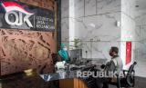 Karyawan memberikan pelayanan usai peresmian kantor baru Otoritas Jasa Keuangan (OJK) Solo di Jalan Slamet Riyadi, Solo, Jawa Tengah, Jumat (19/6/2020). Gedung baru OJK Solo perancangannya menjadi standar gedung OJK di daerah yang menggambarkan nilai visi dan misi OJK yaitu meningkatkan perekonomian wilayah Solo Raya yang mempunyai kapasitas ekonomi besar pada sektor industri pengolahan, perdagangan, ekonomi kreatif dan pariwisata. (FOTO : Antara/Mohammad Ayudha)