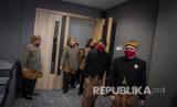 Ketua Dewan Komisioner Otoritas Jasa Keuangan (OJK) Wimboh Santoso (depan kedua kiri) didampingi Wali Kota Solo FX Hadi Rudyatmo (depan kedua kanan) melihat-lihat ruang audio visual usai meresmikan kantor baru OJK Solo di Jalan Slamet Riyadi, Solo, Jawa Tengah, Jumat (19/6/2020). Gedung baru OJK Solo perancangannya menjadi standar gedung OJK di daerah yang menggambarkan nilai visi dan misi OJK yaitu meningkatkan perekonomian wilayah Solo Raya yang mempunyai kapasitas ekonomi besar pada sektor industri pengolahan, perdagangan, ekonomi kreatif dan pariwisata. (FOTO : Antara/Mohammad Ayudha)