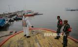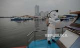 Penyemprotan dilakukan di area pelabuhan dan kapal, untuk mencegah virus covid-19..