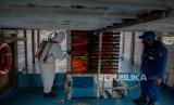 Penyemprotan Cairan Disinfektan Kapal di Pelabuhan Kaliadem
